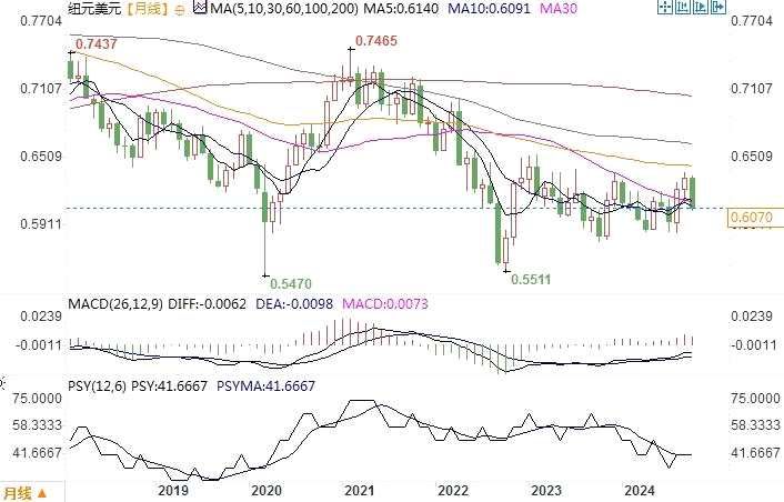 纽元兑美元月线图来源:易汇通北京时间10月16日11:09 纽元兑美元 报 0.6069/70